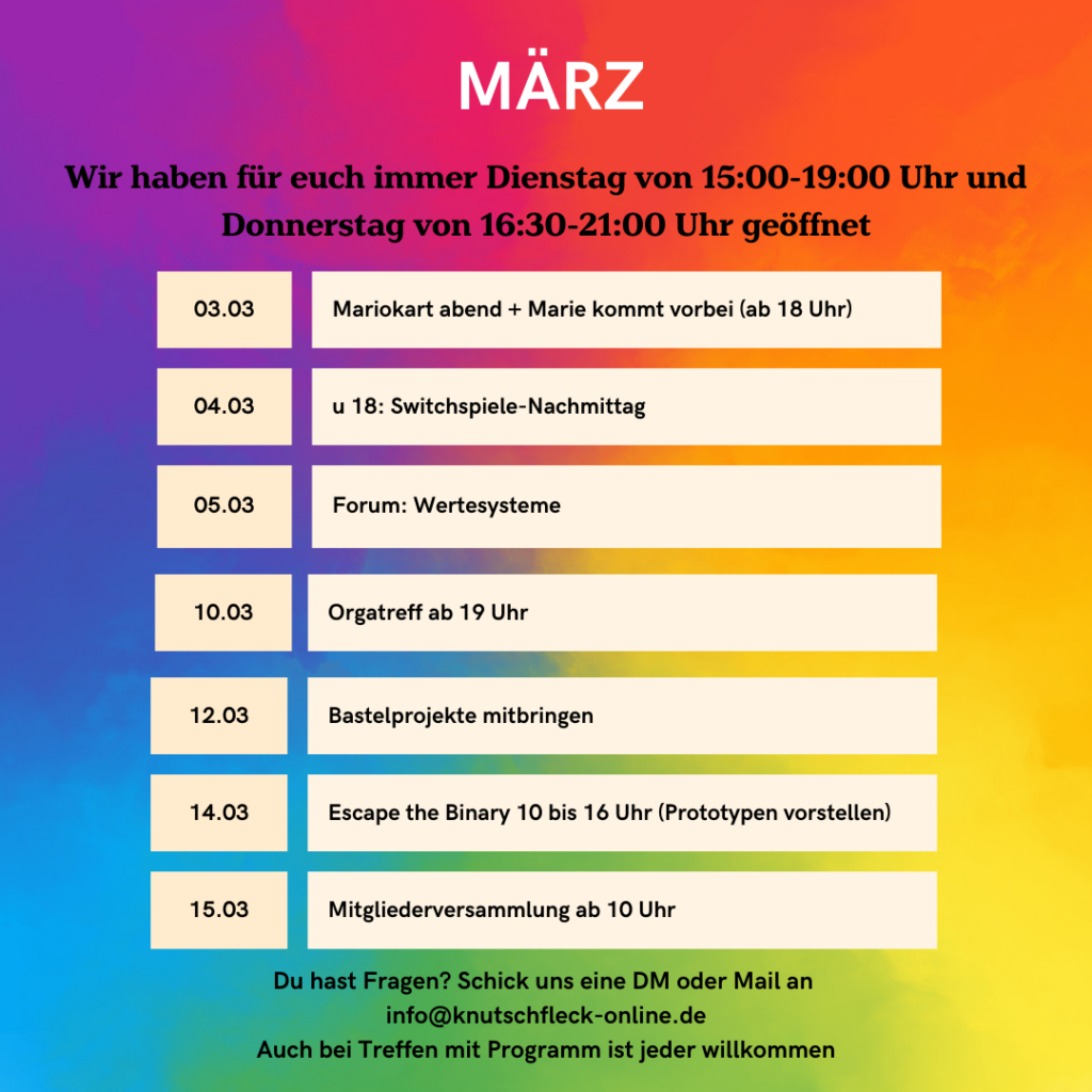Wir haben für euch immer Dienstag von 15:00-19:00 Uhr und
